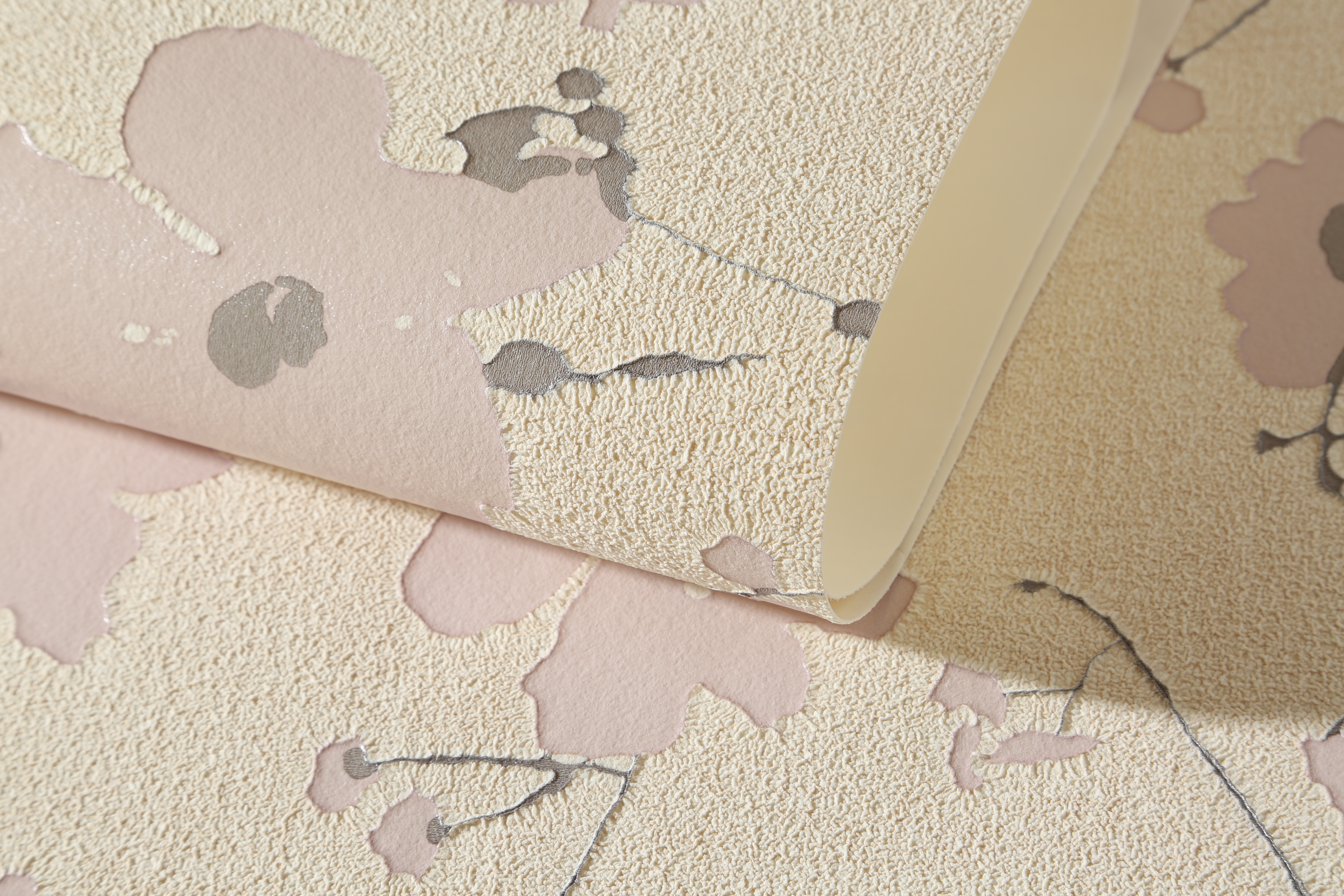 該墻布采用了棉、麻等天然的纖維或滌綸、晴綸等進(jìn)行合成纖維,經(jīng)過(guò)了無(wú)紡成型、上樹(shù)脂、印制各色花紋而成。不僅表面光滑、有彈性、對(duì)皮膚也沒(méi)有刺激性,可進(jìn)行擦洗不易褪色。